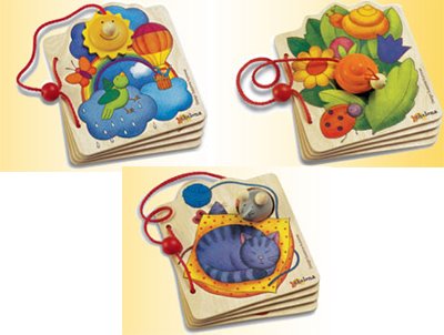 Peres oli kaks last – aastane ja kolmene – seega on neil üksjagu lasteraamatuid. Ja mina muudkui vaatasin ja vaimustusin. Just neist kõige väiksematest, paariaastastele mõelduist. Papist ja puidust. Uurisin netist järele, kõik on praegu veel saada ka. Kangesti tahaks osta, aga praegu ei tohi – raha pole ja laps on liiga noor nagunii. Aga tõenäoliselt ostan varsti oma kõige lemmikumad ikkagi ära 😛 Lihtsalt nii ilusad pildid olid.